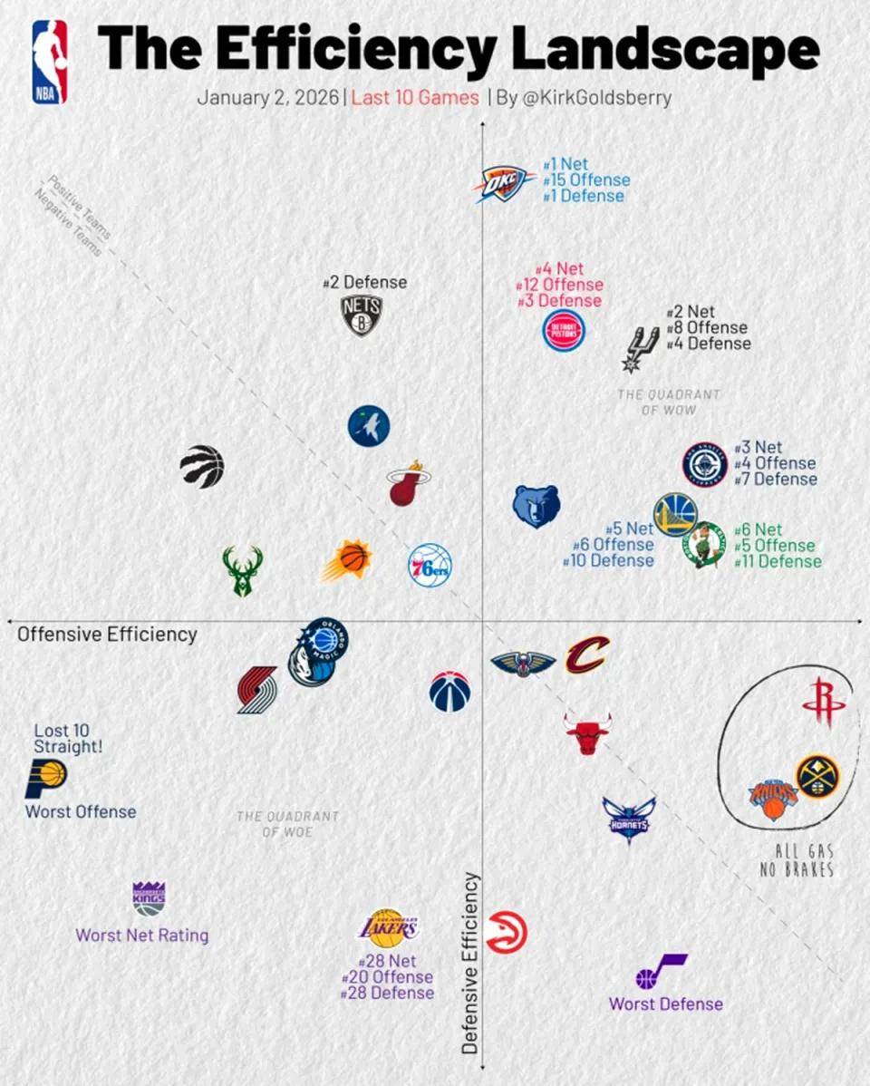 首先,火箭队战绩喜人。在范弗利特长期缺阵,新援芬尼·史密斯刚复出不久,申京、伊森等核心球员也饱受伤病困扰的情况下,火箭队依然保持着不错的竞争力。要知道,“东西没坏就不要修”是联盟管理层普遍认可的原则。目前火箭队的阵容在不利局面下表现出色,斯通自然没有必要进行大幅度的调整。更何况,火箭队正处于上升期,过去十场比赛的进攻效率高居联盟第一。本赛季至今,火箭队的篮板率高达56.5%,篮板净胜值达到11.4,均创下了NBA历史新纪录。此外,火箭队的进攻效率排名联盟第二,防守效率排名联盟第十,是联盟中为数不多的攻防效率均排名前十的球队之一。防守效率之所以未能进入前五,与伊森和芬尼·史密斯的缺席有很大关系。随着两人伤愈归队,火箭队的防守势必会更上一层楼。数据也证明了这一点,当伊森首发出战时,火箭队保持全胜。当伊森和阿门·汤普森同时在场时,进攻效率高达126.3,联盟第一,防守效率为107.1,联盟第二,净效率更是高达19.2。