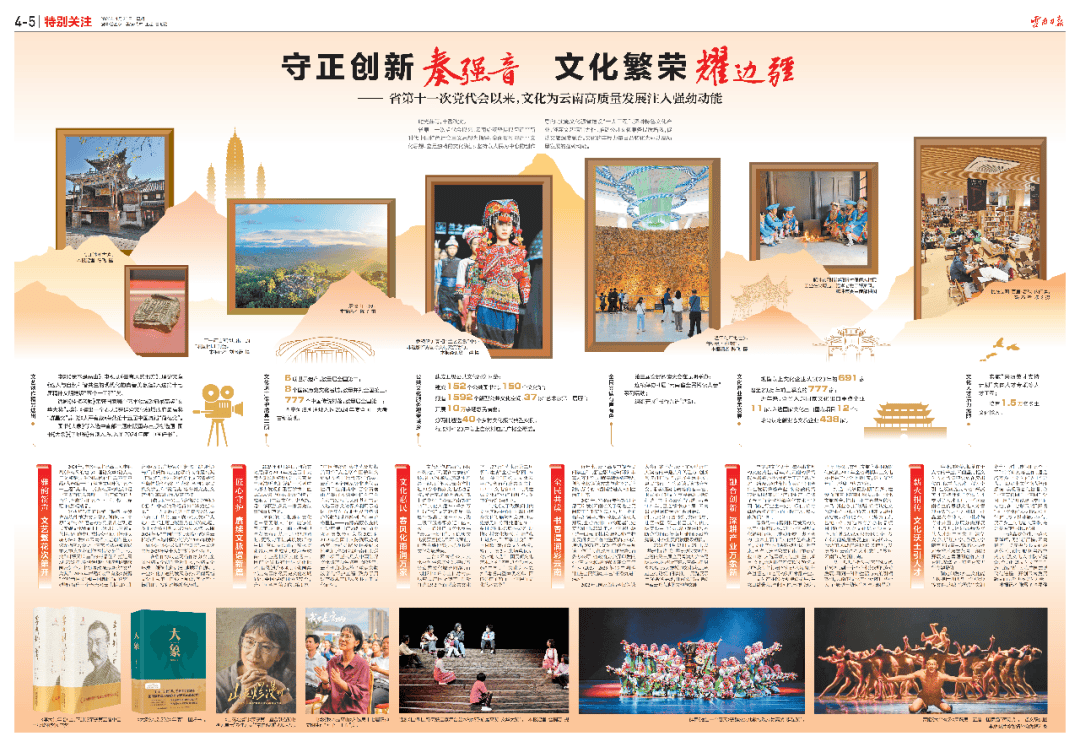 文艺创作的舞台,不仅在聚光灯下,更在村寨的广场、社区的院坝、劳动生产第一线余个群众文化活动品牌,累计完成10万余场“戏曲进乡村”“彩云之南等你来”“文化大篷车·千乡万里行”和“文艺轻骑兵”基层行等惠民演出活动,线亿人次……通过打通文化惠民“最后一公里”,将优质文化资源直接送到群众面前,让老百姓能够更好地共享文化发展成果。